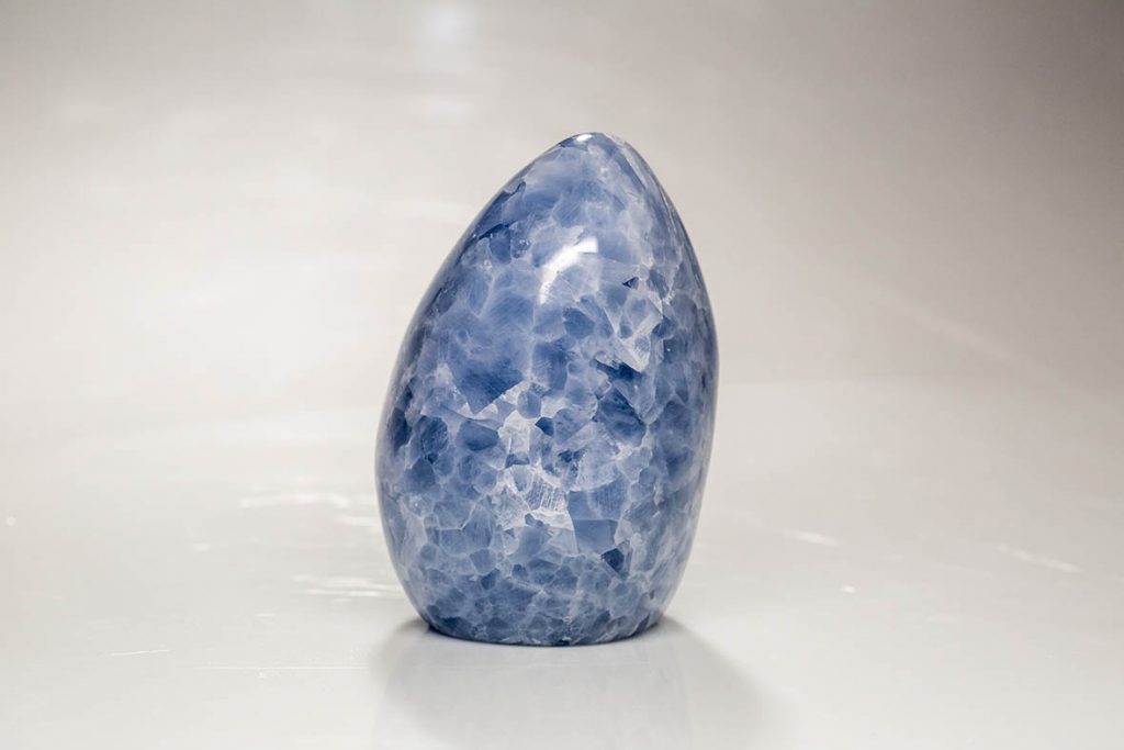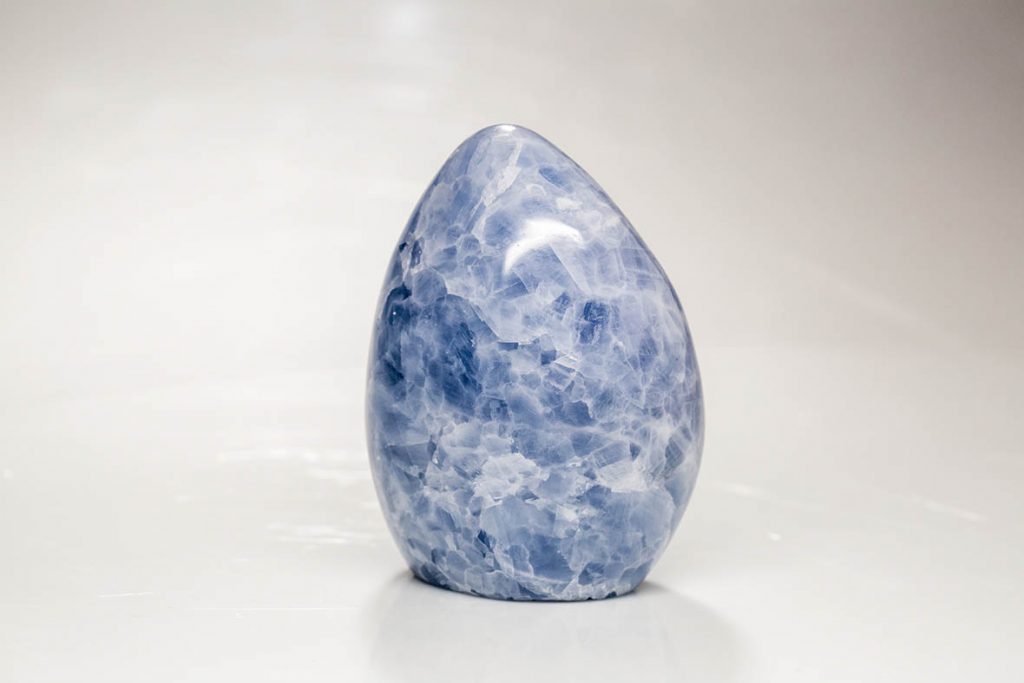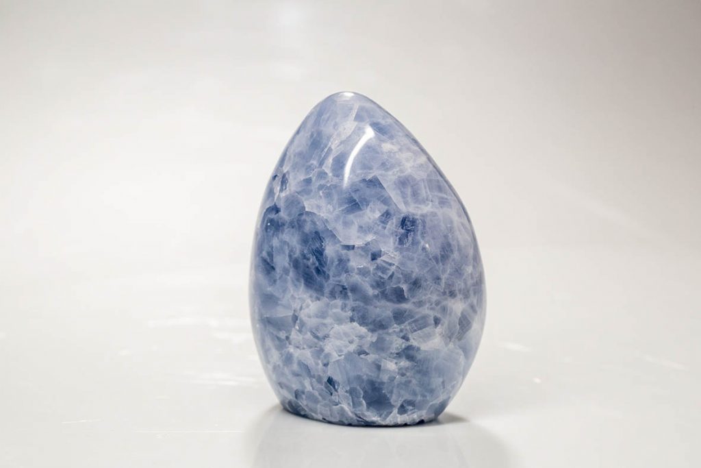 Elle peut également se trouver en géode et alors donner l’effet d’un glaçon bleuté. En pierre polie, la Célestine est pareille à un ciel d’été légèrement nuageux.
