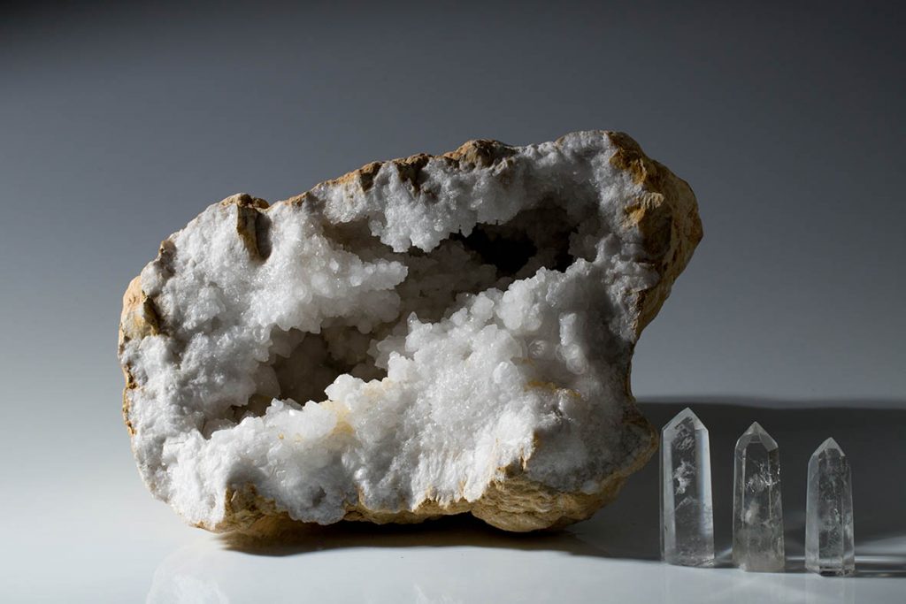 Le Cristal de roche est principalement composé de dioxyde silicium.
