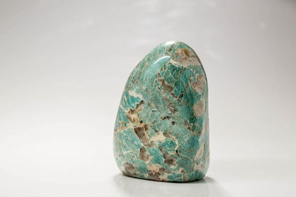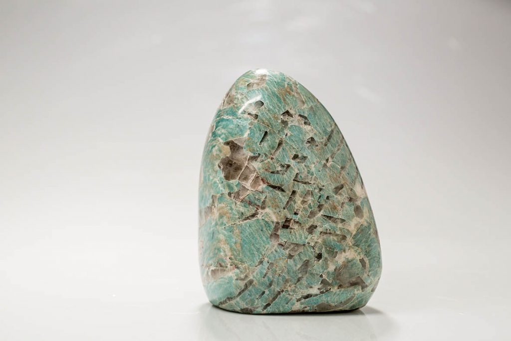 L’Amazonite possède une très belle couleur d’un mélange entre le bleu, le vert et le gris.